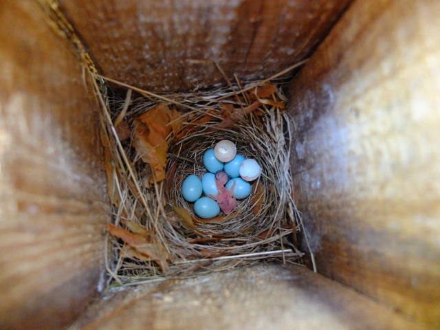 One Pied flycatcher egg hatched so far in this nest box
